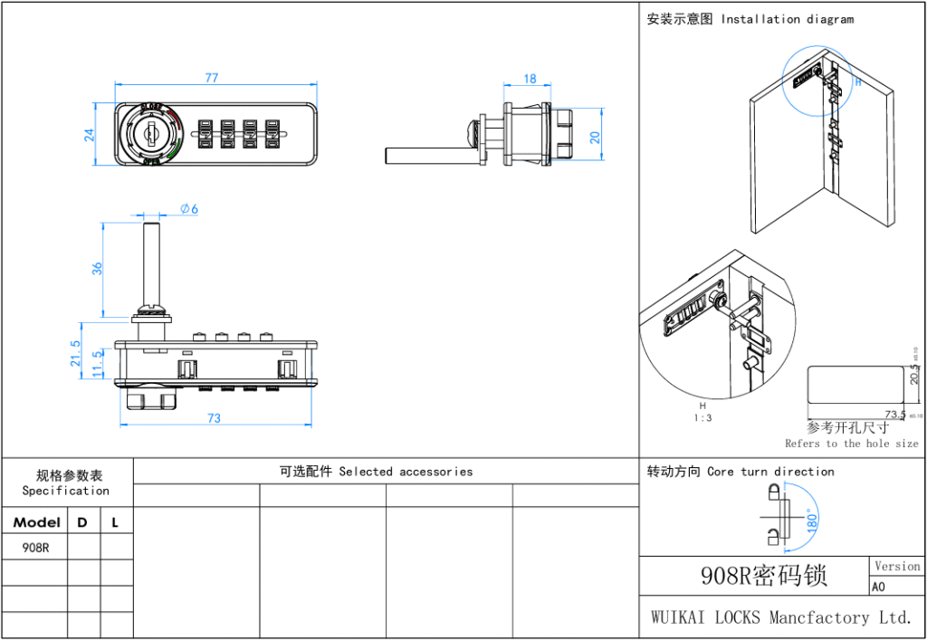 Combination Lock Product informationLock type: Combination LockModel:908L/908RDimensions: Please view the drawings.Material: Zinc alloy/PlasticKey system: Supports Master KeysColor:Black/customized Good Quality Price Service Request a Quote Custom sizes, colors, packaging, or other product needs, as well as international shipping quotes Please enable JavaScript in your browser to complete this form.Please enable JavaScript in your browser to complete this form.Name *Email * of Email Product Product models of interest *Send Message