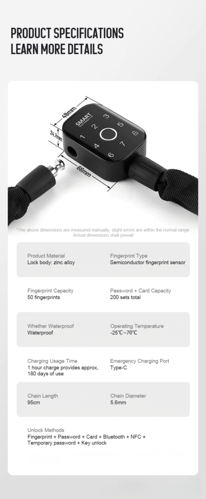 5.High-strength zinc alloy lock body with hardened chain, anti-cutting and anti-prying.