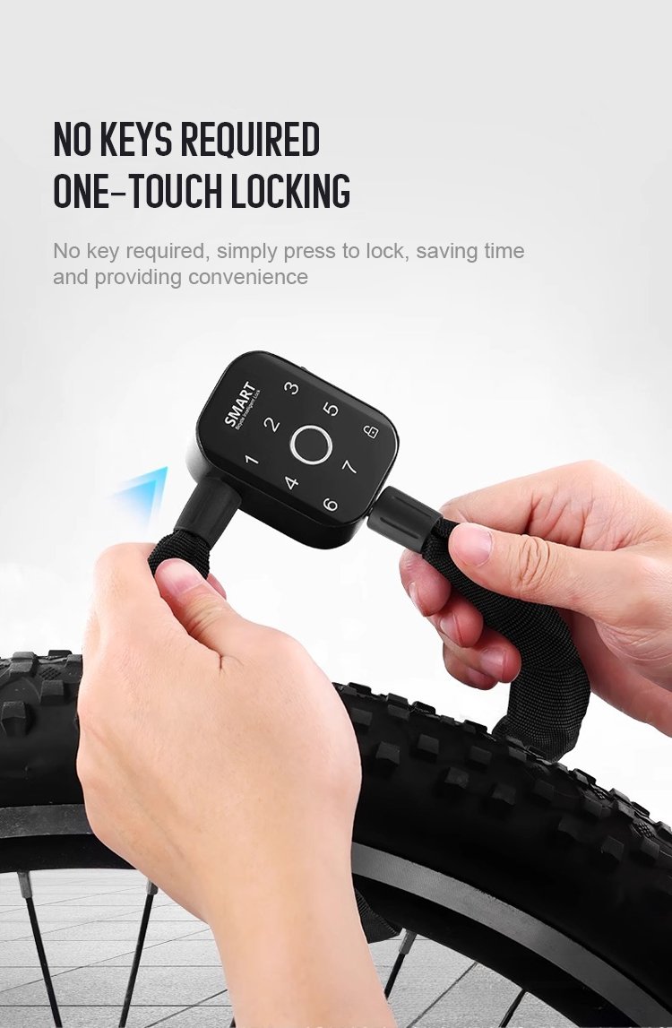 Bicycle Lock:Alloy Fingerprint With Electric Intelligent Chain Anti-Shear Cycling Bicycle Smart Portable Number Rope Mountain Bike Code Locks