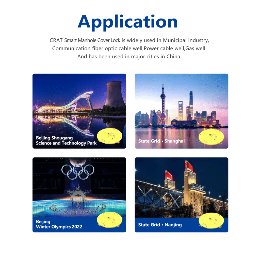 Smart Manhole cover lock widely used in Municipal industry, Communication fiber optic cable well, Power cable well, Gas well.